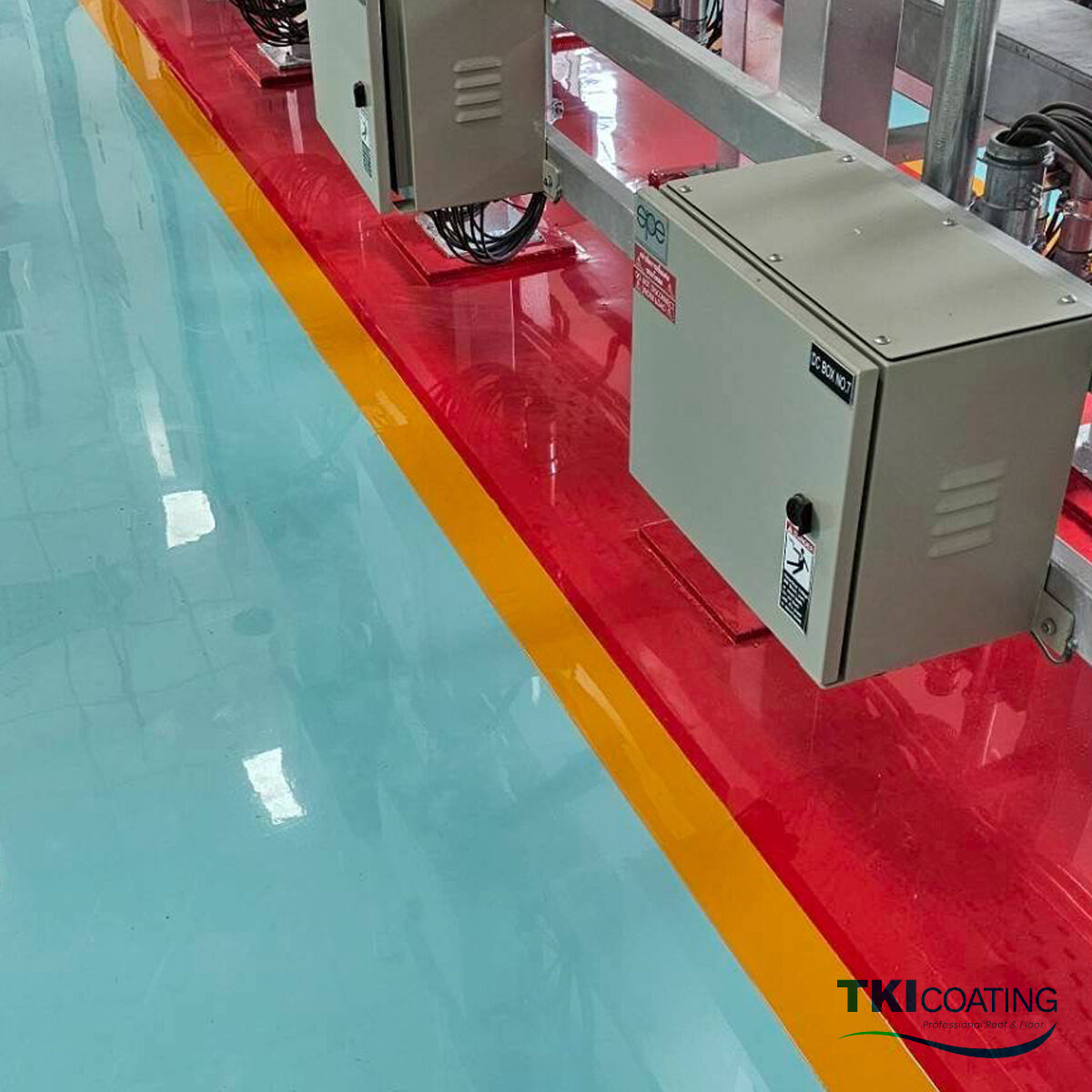 TKI COATING specializes in professional industrial flooring installation using advanced surface coating systems. We handle projects ranging from 200 to 20,000 square meters, including epoxy coating, epoxy self-leveling, PU flooring, rooftop waterproofing, industrial roof spray coating, sports flooring, cold room and cleanroom flooring, parking floors for shopping malls, showroom flooring, as well as line marking and traffic symbol services within factories.