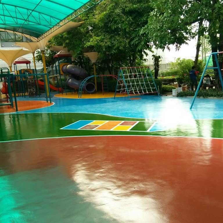- New sports floor resurfacing with enhanced flexibility and impact resistance