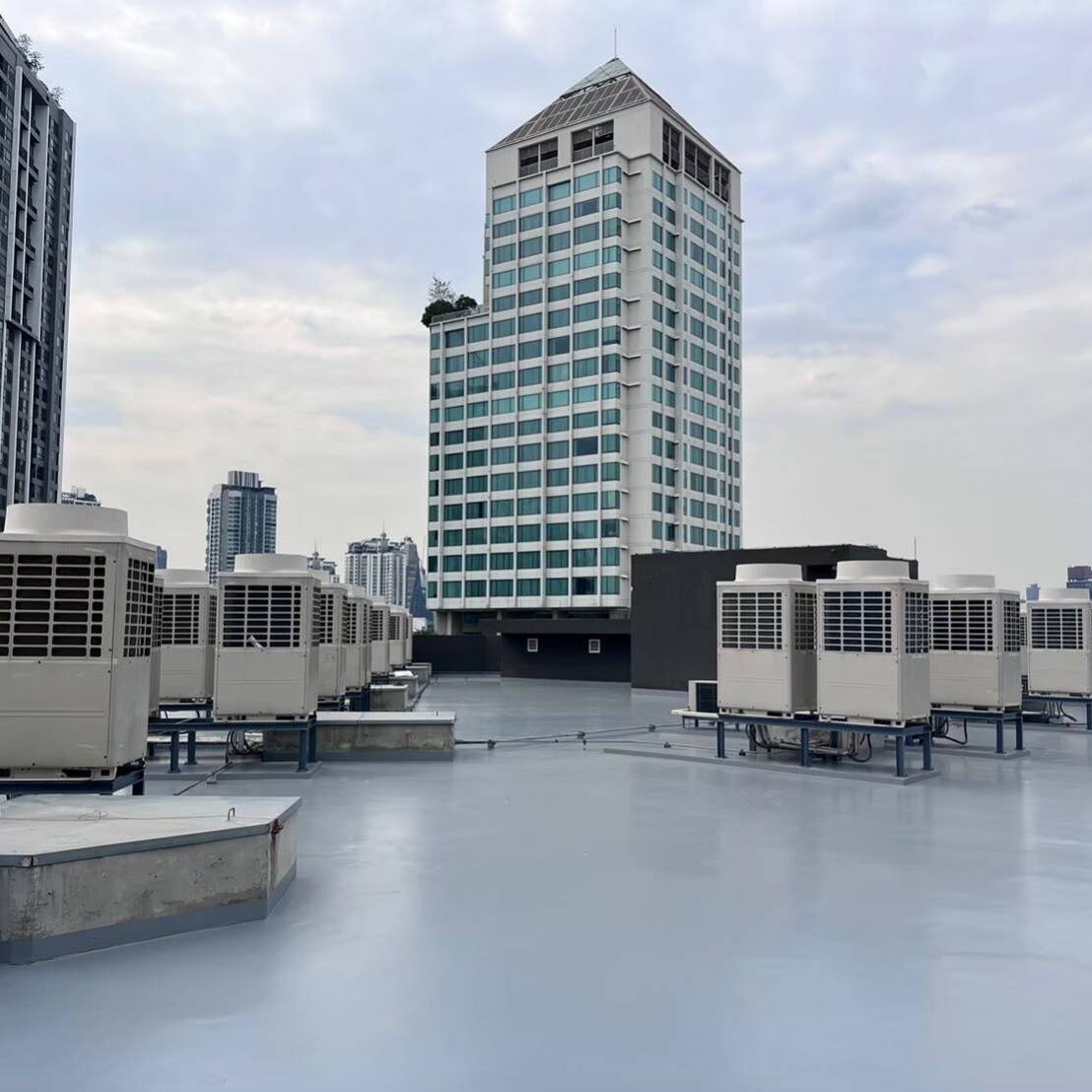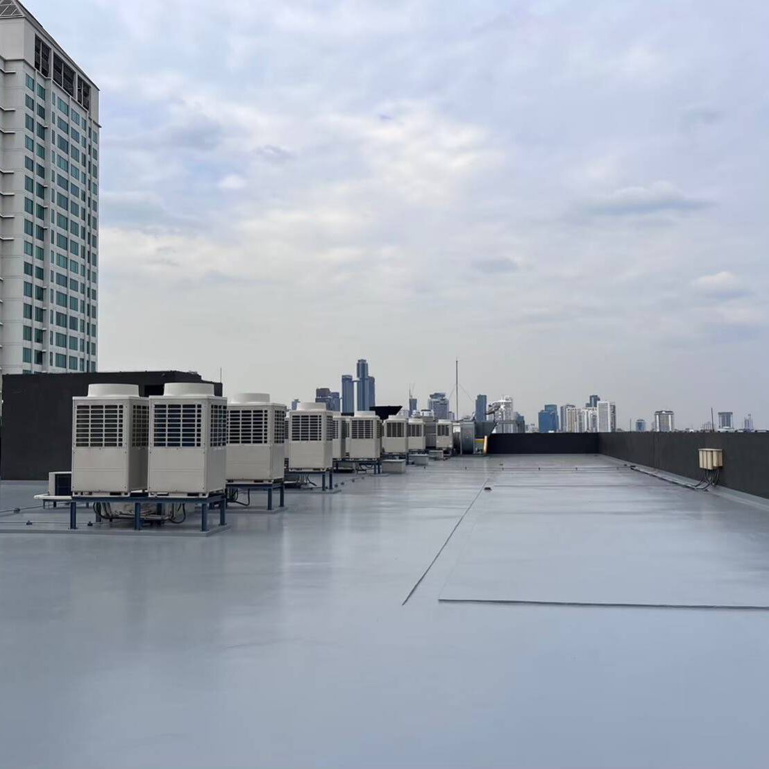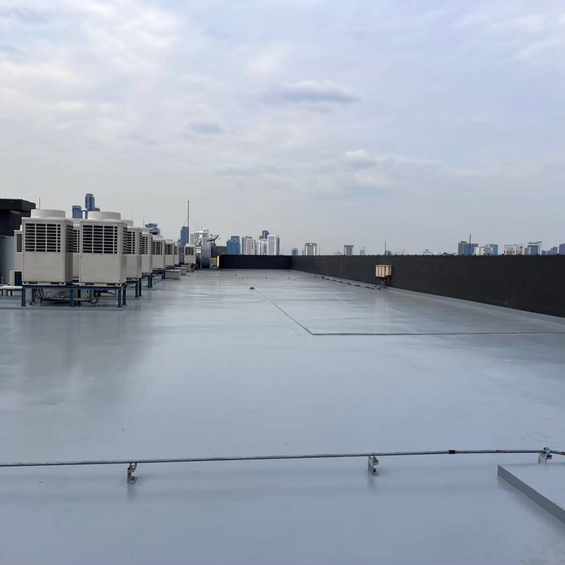 Our Waterproofing System is designed to protect rooftop surfaces from water leakage while also acting as a thermal barrier that reflects heat. The coating material penetrates surface cracks and pores, effectively sealing imperfections while forming a new protective layer that provides both waterproofing and heat insulation in one solution.